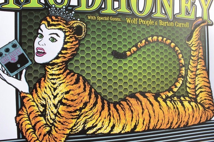 PRINT: 5 Color Screen Print including a lustrous tinted Metallic Silver accompanied by a Hybrid Neon ink!